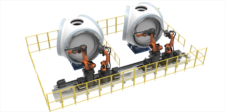 在新能源領(lǐng)域——風(fēng)電行業(yè),必一运动 B-sports智造國內(nèi)首創(chuàng)的機(jī)器人智能螺栓緊固系統(tǒng),擁有多項(xiàng)專利技術(shù),風(fēng)電行業(yè)螺栓緊固系統(tǒng)處于市場領(lǐng)先地位;風(fēng)電主機(jī)裝配用的重載AGV智能化脈動(dòng)生產(chǎn)線,多車聯(lián)動(dòng)技術(shù)獨(dú)樹一幟;風(fēng)電葉片大型曲面智能柔性磨拋技術(shù)、機(jī)架超厚板自動(dòng)化焊接機(jī)器人系...